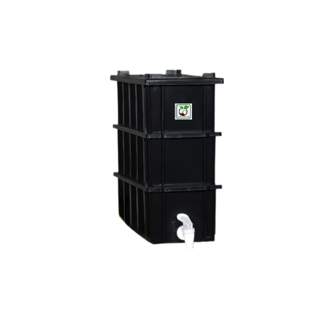 A Composteira Doméstica Compostagem Japi possui 2 caixas digestoras para o acúmulo de matéria orgânica, 1 caixa coletora acrescida de 1 torneira para o armazenamento do biofertilizante produzido pela vermicompostagem, 1 tampa para proteção de parasitas, totalizando 12 litros. acompnaha manual.