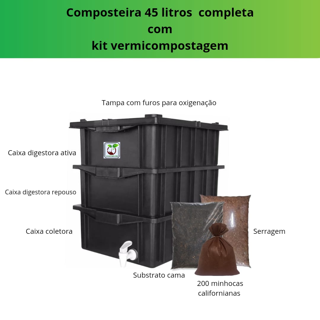 *** Composteira Doméstica 45 Litros E Kit Compostagem ***