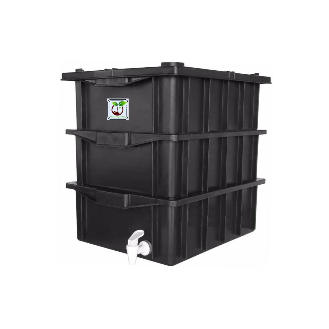 A Composteira Doméstica Compostagem Japi possui 2 caixas digestoras para o acúmulo de matéria orgânica, 1 caixa coletora acrescida de 1 torneira para o armazenamento do biofertilizante produzido pela vermicompostagem, 1 tampa para proteção de parasitas, totalizando 45 litros. Acompanha 1 manual.